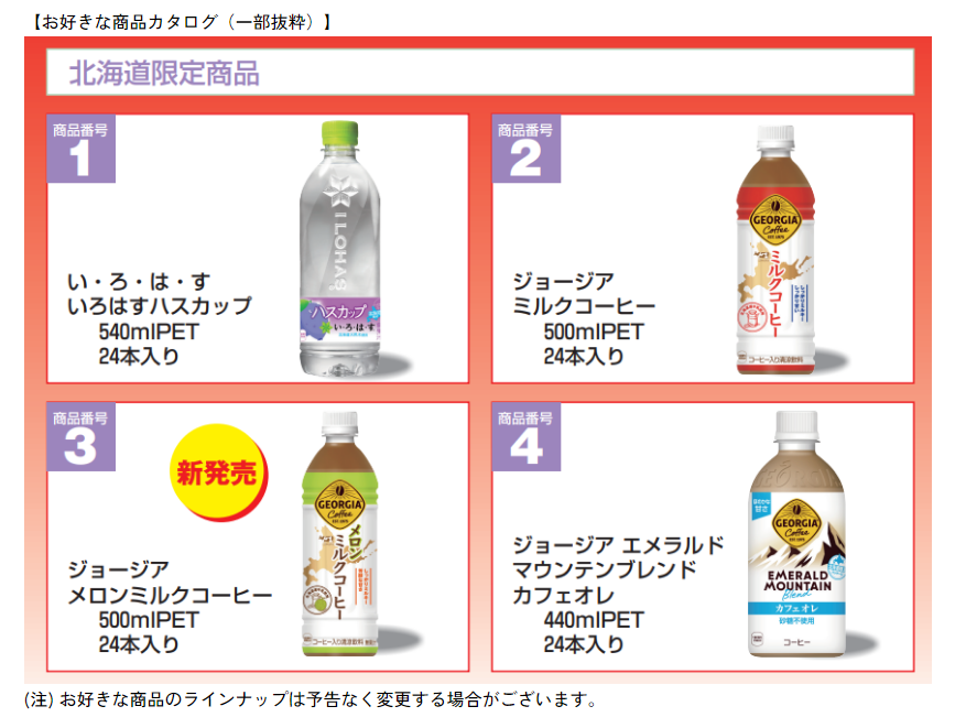 お好きな商品カタログには、北海道限定商品も含まれており、お好みの商品を選択することができます。