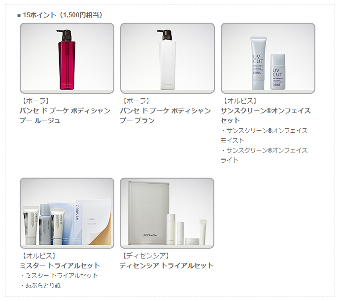 15ポイントですと、1,500円相当の商品と引き換えることができます。