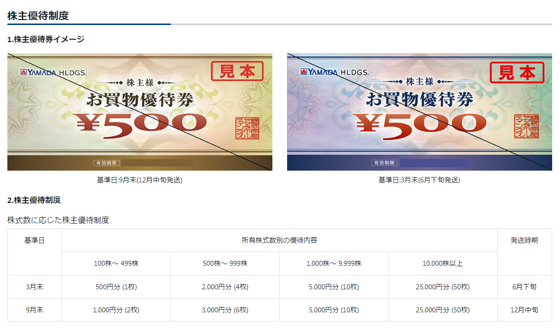 ヤマダHDの株主優待は、3月と9月が権利確定月となります。
