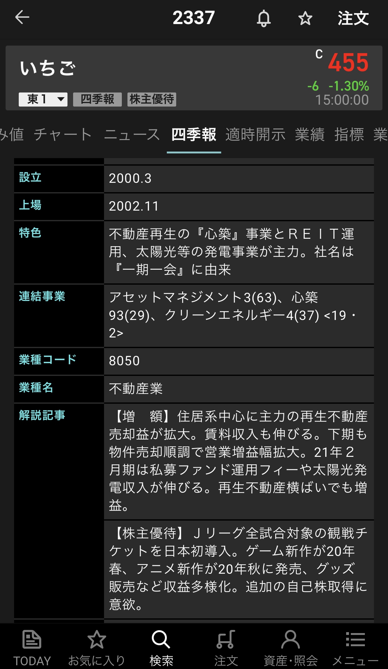 いちご【2337】の情報