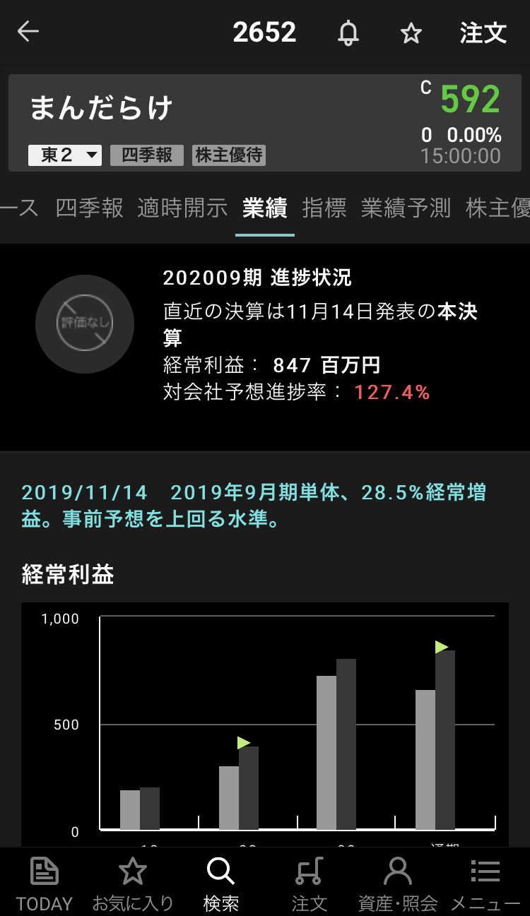 2019年11月の月次売上高を下記のとおりご報告申し上げます。