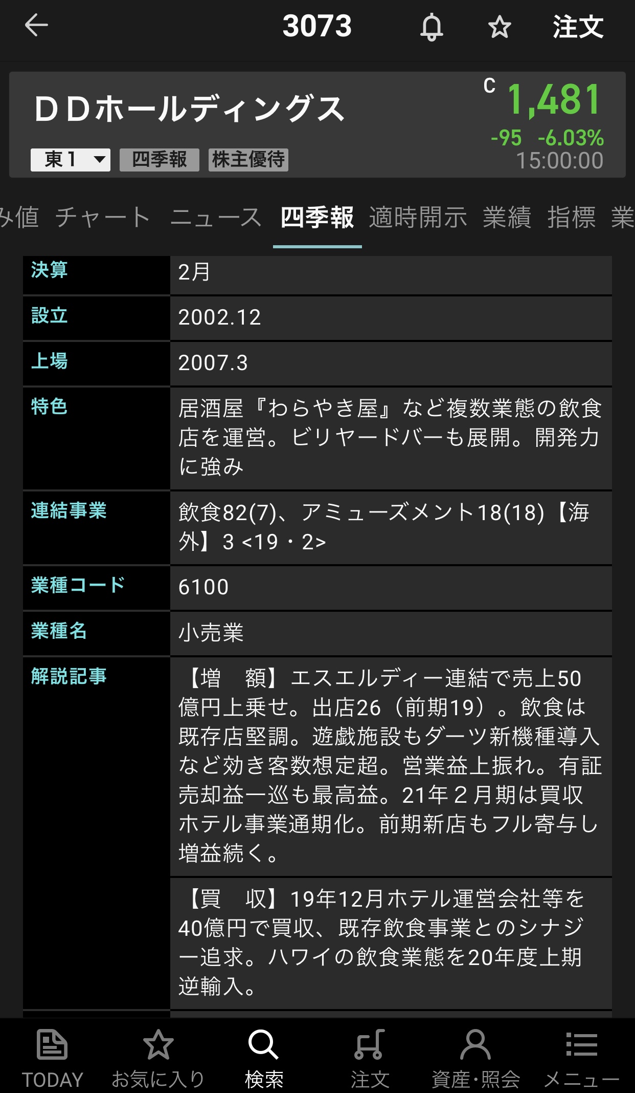 月次開示 材料 DDホールディングス|2019年12月度 月次売上高等前年同月比及び店舗の状況についてのお知らせ Facebook postはてブLINEPocketFeedly 概要 2019年12月度の月次売上高等前年同月比及び出退店等の店舗の状況について、下記のとおりお知らせ致します。 Ⅰ.2020年2月期 前年同月比推移(売上高・客数・客単価) DDホールディングス【3073】の情報 IR情報 3073-20200114 スポンサーリンク Facebook postはてブLINEPocketFeedly