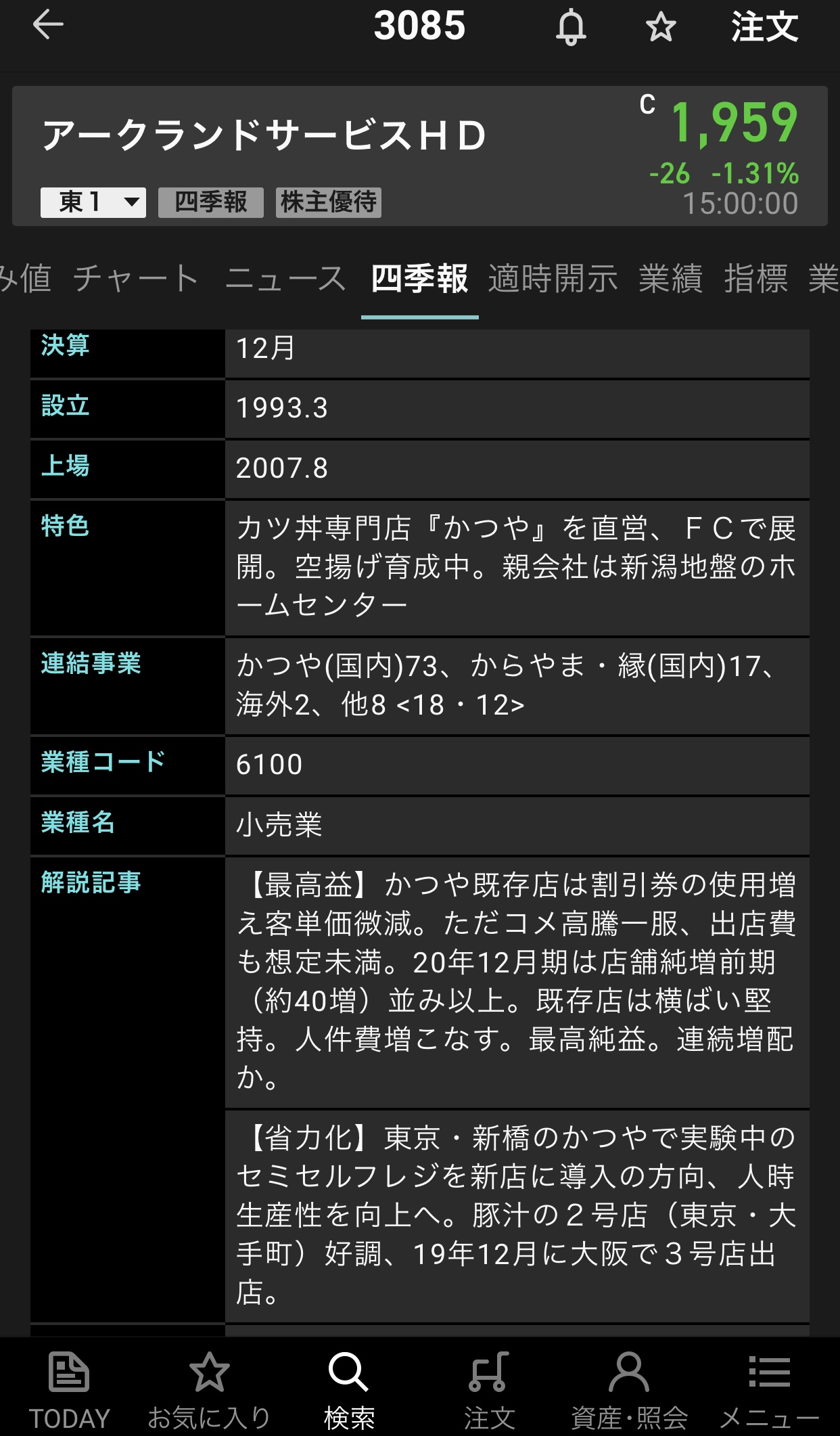 月次開示 材料 アークランドサービスホールディングス|2020 年 12 月期1月度月次売上高に関するお知らせ Facebook postはてブLINEPocketFeedly 概要 2020 年 12 月期1月度の売上速報値の集計ができましたので、お知らせいたします。 アークランドサービスホールディングス【3085】の情報 IR情報 3085-20200203 スポンサーリンク Facebook postはてブLINEPocketFeedly