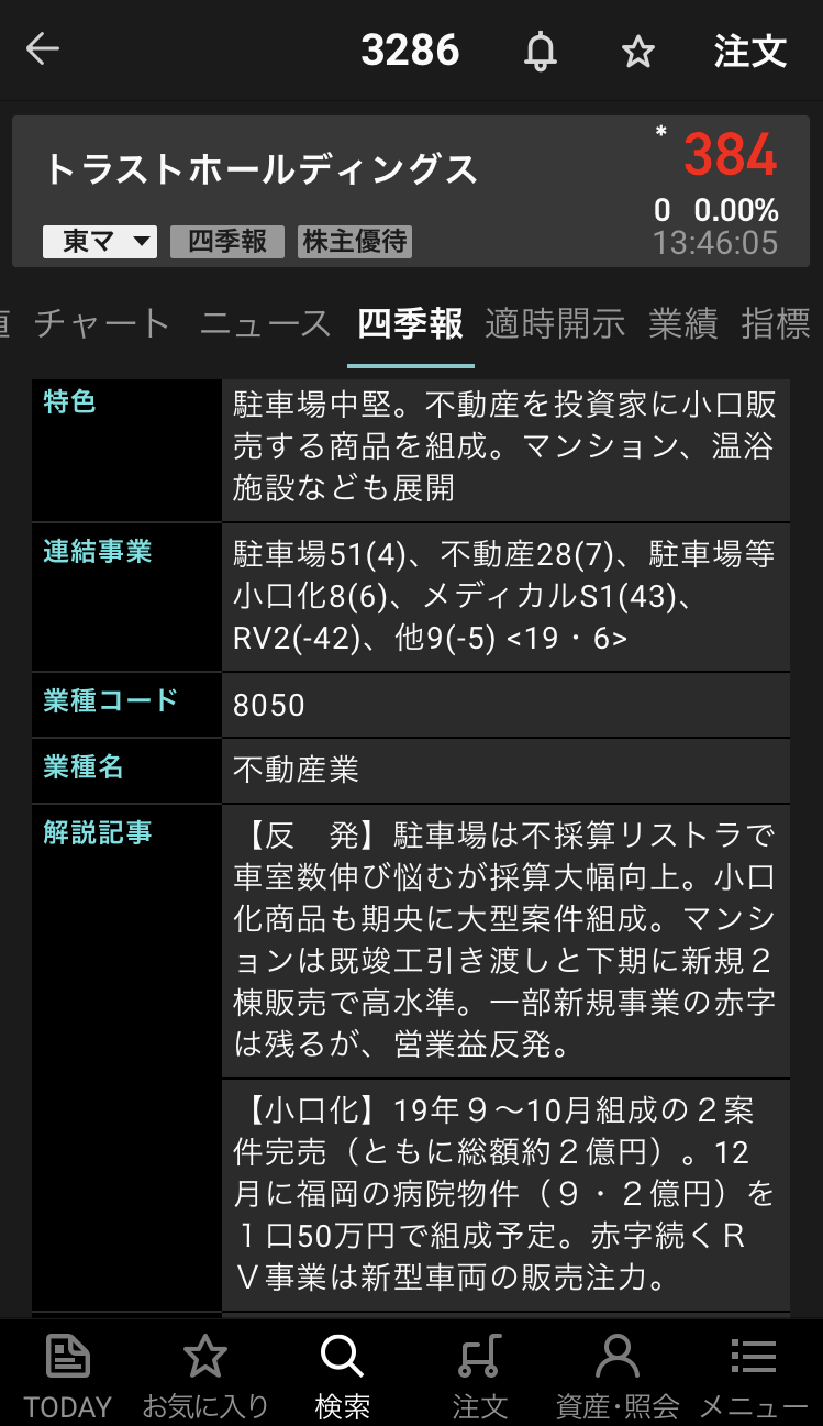 材料 特別利益 トラストホールディングス|連結子会社における固定資産の譲渡に関するお知らせ Facebook postはてブLINEPocketFeedly 概要 当社の連結子会社であるトラストパーク株式会社は、令和元年 12 月 16 日開催の同社取締役会において、下記の不動産(以下「本物件」という)の譲渡について決議いたしました。 また、当社の連結子会社であるトラストアセットパートナーズ株式会社は、同日開催の同社取締役会において、本物件を販売用不動産として取得することについて決議いたしましたので、お知らせいたします。 トラストホールディングス【3286】の情報 IR情報 3286 スポンサーリンク Facebook postはてブLINEPocketFeedly