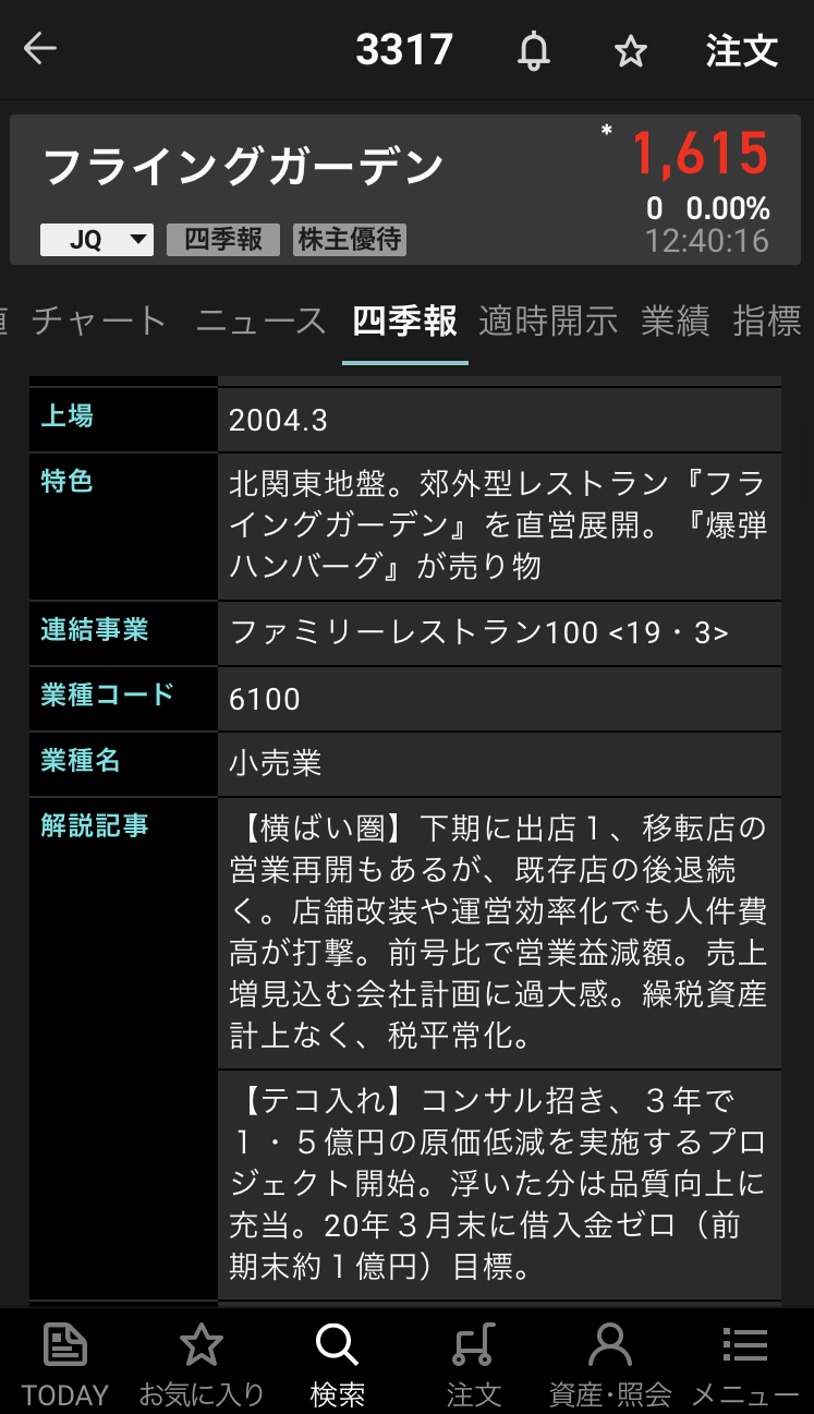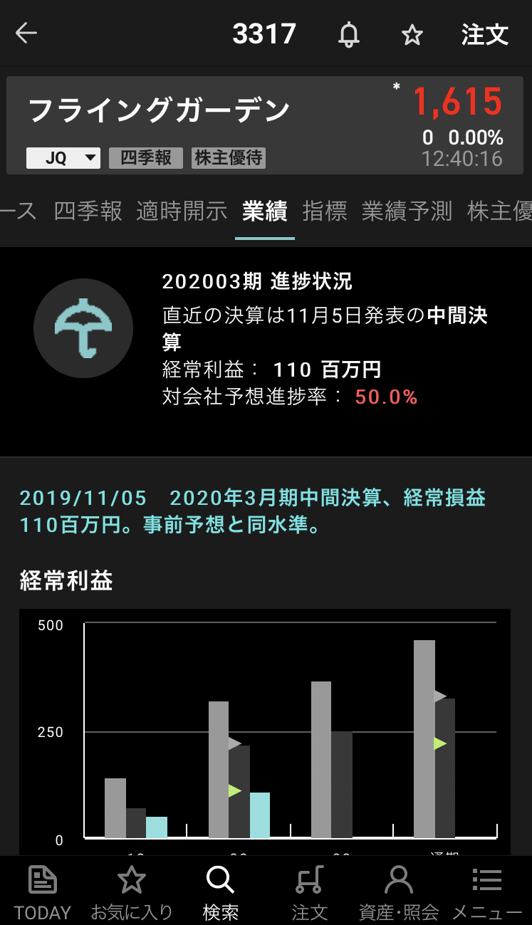 材料 決算説明資料 フライングガーデン|個人投資家向け会社説明会 Facebook postはてブLINEPocketFeedly 概要 売上高は既存店売上高の伸び悩み等により、前期比4.1%減の3,608百万円、経常利益は49.4%減の110百万円、四半期純利益は48.8%減の70百万円と減収減益になりました。 フライングガーデン【3317】の情報 IR情報 3317-20191211 スポンサーリンク Facebook postはてブLINEPocketFeedly