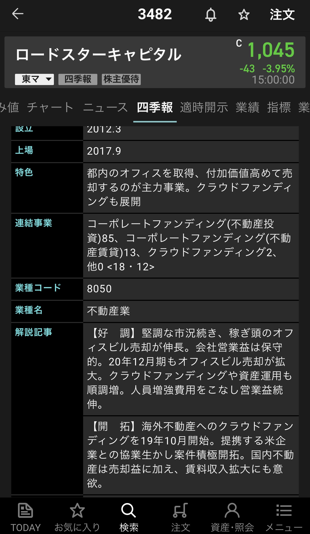 売却 材料 ロードスターキャピタル|販売用不動産の売却に関するお知らせ Facebook postはてブLINEPocketFeedly 概要 当社は、本日開催の取締役会において、下記のとおり、販売用不動産の売却について決議いたしましたのでお知らせいたします。 1.物件の概要 物件種類 事務所 所在地 東京都千代田区 構 造 鉄骨鉄筋コンクリート造陸屋根地下1階付き9階建 ロードスターキャピタル【3482】の情報 IR情報 3482-20191223 スポンサーリンク Facebook postはてブLINEPocketFeedly