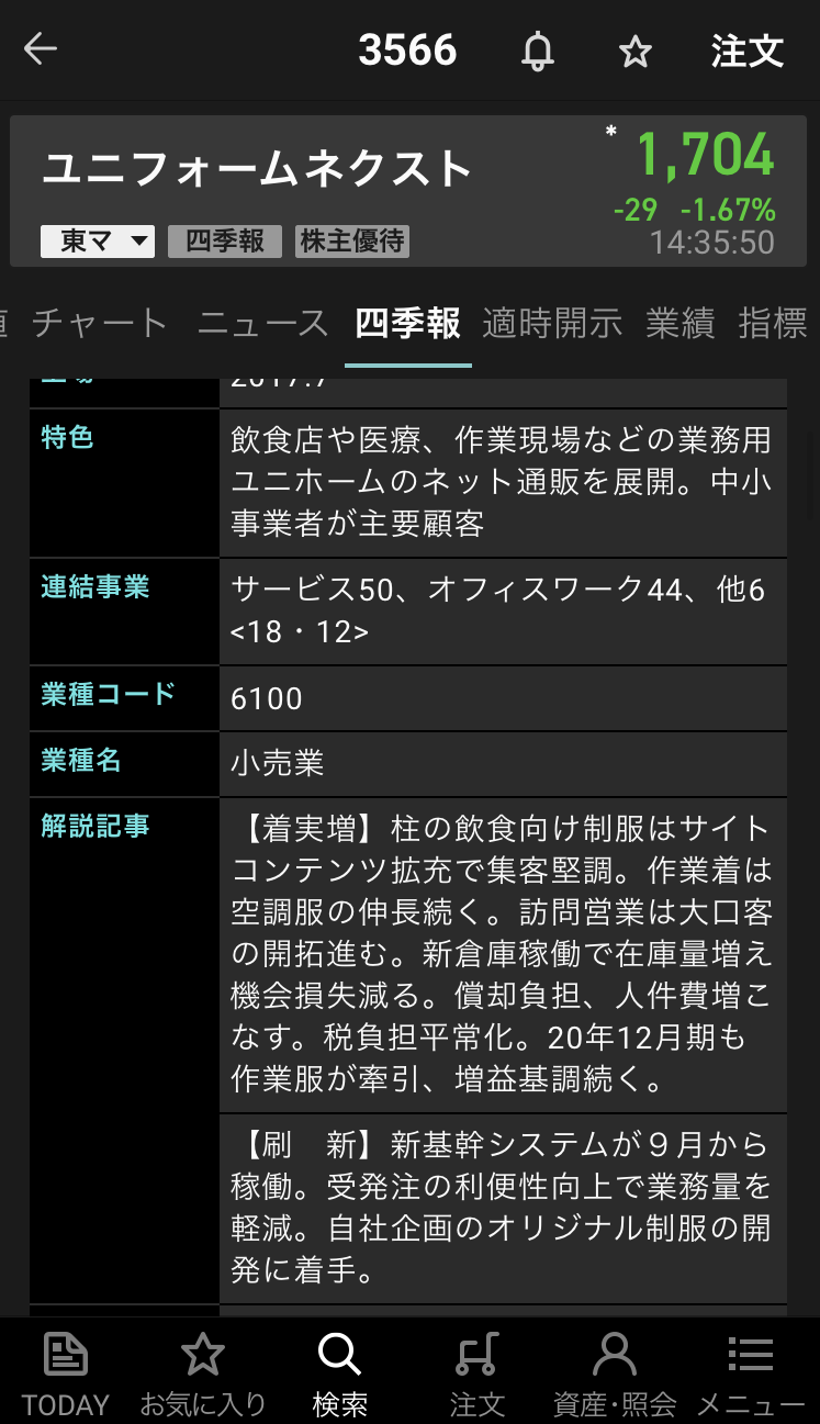 月次開示 材料 ユニフォームネクスト|2019 年 12 月期 11 月度 月次業績速報 Facebook postはてブLINEPocketFeedly 概要 当社の月次業績速報をお知らせいたします。 ユニフォームネクスト【3566】の情報 IR情報 3566-20191206 スポンサーリンク Facebook postはてブLINEPocketFeedly