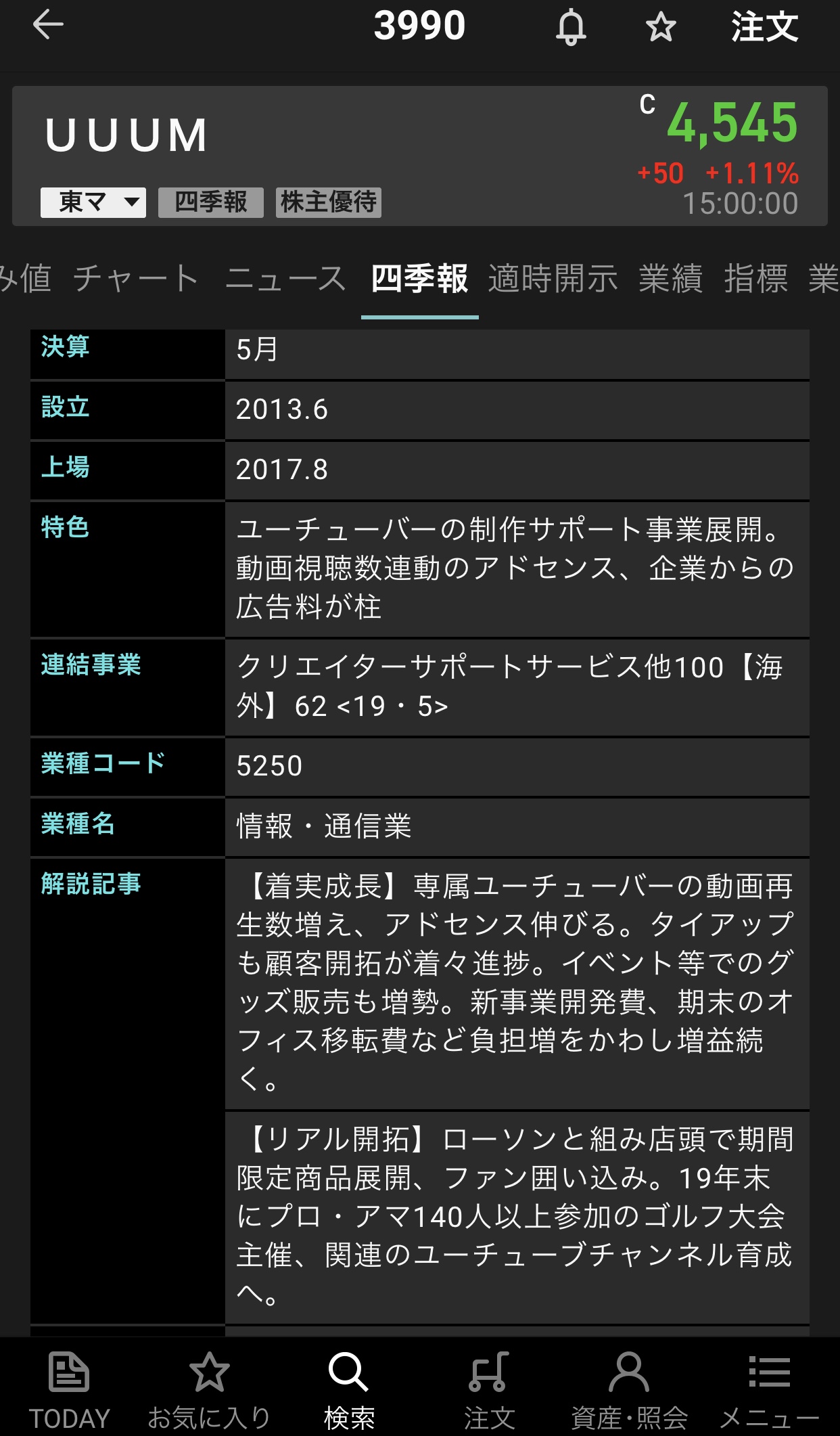 材料 特別損失 UUUM|特別損失(投資有価証券評価損)の計上に関するお知らせ Facebook postはてブLINEPocketFeedly 概要 当社は、 2020 年 5 月期 第2四半期決算において、下記のとおり、特別損失(投資有価証券評価損)の計上を行いましたので、お知らせいたします。 1.特別損失(投資有価証券評価損)の計上について 当社が保有する投資有価証券について、簿価に比べて実質価値が著しく下落しているものについて評価した結果、減損処理による投資有価証券評価損として、連結及び個別において、それぞれ109 百万円を特別損失に計上いたしました。 UUUM【3990】の情報 IR情報 3990-20200114 スポンサーリンク Facebook postはてブLINEPocketFeedly