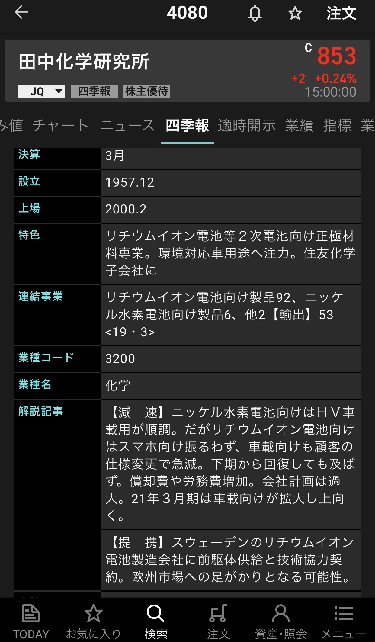お知らせ 材料 田中化学研究所|シンジケートローン契約締結に関するお知らせ Facebook postはてブLINEPocketFeedly 概要 当社は、株式会社三菱UFJ銀行をアレンジャーとし、下記のとおりシンジケートローン契約を締結いたしましたのでお知らせいたします。 1.本件の目的 当社は、リチウムイオン電池やニッケル水素電池など環境対応車用二次電池市場の拡大に対し、さらなる事業拡大に向けた設備投資を行っており、これらの事業展開にかかる資金需要に充当することを目的として本契約を締結いたしました。 田中化学研究所【4080】の情報 IR情報 4080-20200128 スポンサーリンク Facebook postはてブLINEPocketFeedly