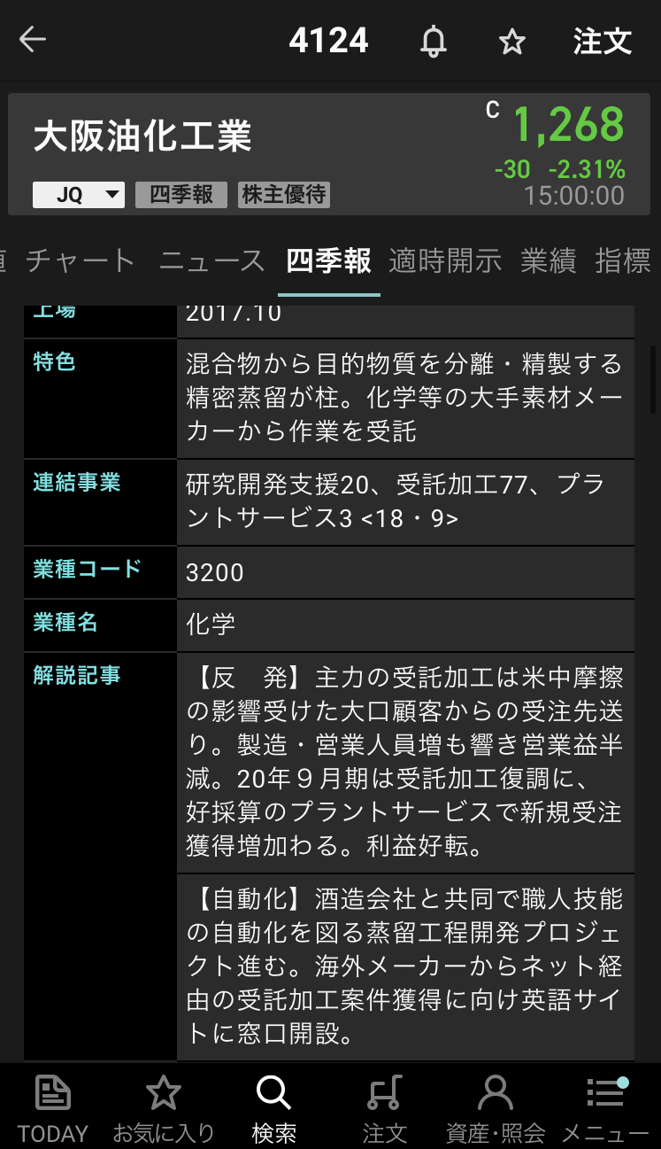 材料 立会外分売 大阪油化工業|株式の立会外分売実施に関するお知らせ Facebook postはてブLINEPocketFeedly 概要 当社株式に関し、下記のとおり立会外分売を実施いたしますので、お知らせいたします。 大阪油化工業【4124】の情報 IR情報 4124 スポンサーリンク Facebook postはてブLINEPocketFeedly