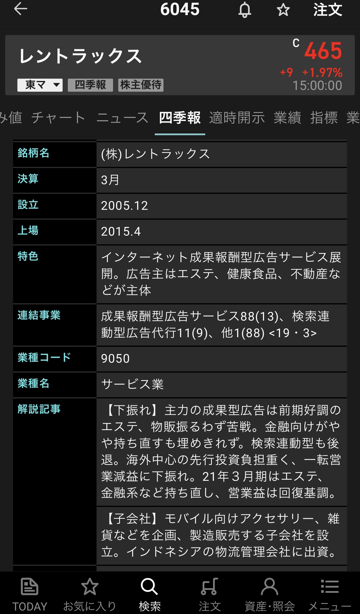 月次開示 材料 レントラックス|2020年3月期12月度の月次売上高等のお知らせ Facebook postはてブLINEPocketFeedly 概要 当社における2019年12月の連結ベースの売上高及び成果報酬型広告サービス事業におけるパートナーサイト運営者数を下記のとおりお知らせいたします。 レントラックス【6045】の情報 IR情報 6045-20200120 スポンサーリンク Facebook postはてブLINEPocketFeedly