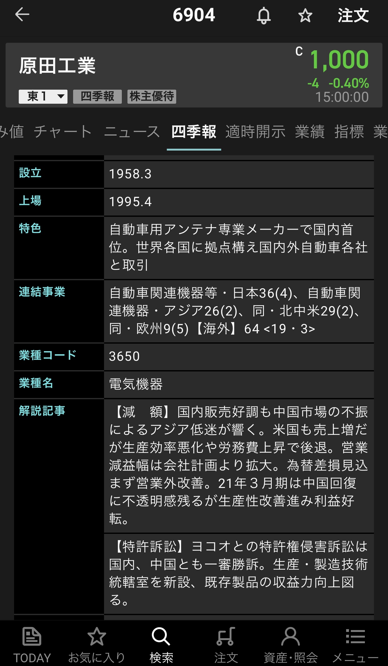 原田工業【6904】の情報