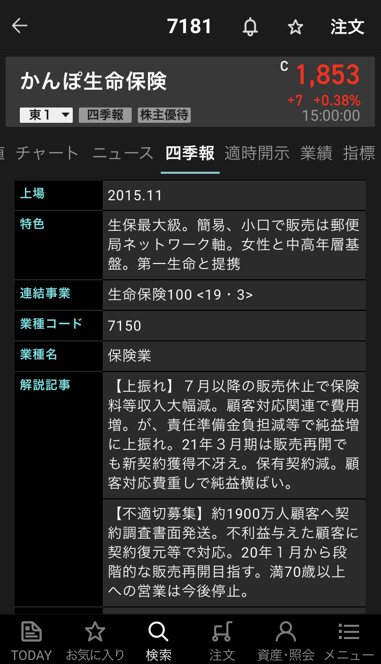 お知らせ 材料 かんぽ生命保険|(開示事項の経過)業務改善計画について Facebook postはてブLINEPocketFeedly 概要 株式会社かんぽ生命保険(東京都千代田区、代表執行役社長 千田哲也、以下「かんぽ生命」)は、本日、金融庁に業務改善計画を提出いたしました。業務改善計画の要旨は別紙のとおりです。 当社では、今回の行政処分を厳粛に受け止め、このたび策定した業務改善計画の実行を経営の最重要課題として位置付け、全社をあげて取り組んでまいります。 かんぽ生命保険【7181】の情報 IR情報 7181-20200131 スポンサーリンク Facebook postはてブLINEPocketFeedly