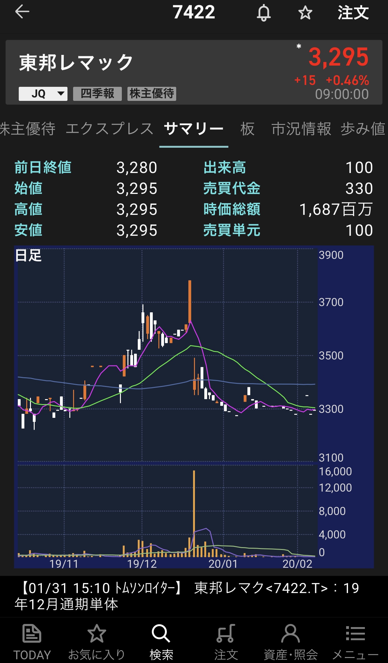月次開示 材料 東邦レマック|東邦レマック株式会社1月度月次業績ご報告 Facebook postはてブLINEPocketFeedly 概要 当社の 2020 年1月(2019 年 12 月 21 日 ~ 2020 年1月 20 日)の月次業績を次の通りご報告いたします。 1月業績 (単位:百万円) 東邦レマック【7422】の情報 IR情報 7422-20200207 スポンサーリンク Facebook postはてブLINEPocketFeedly