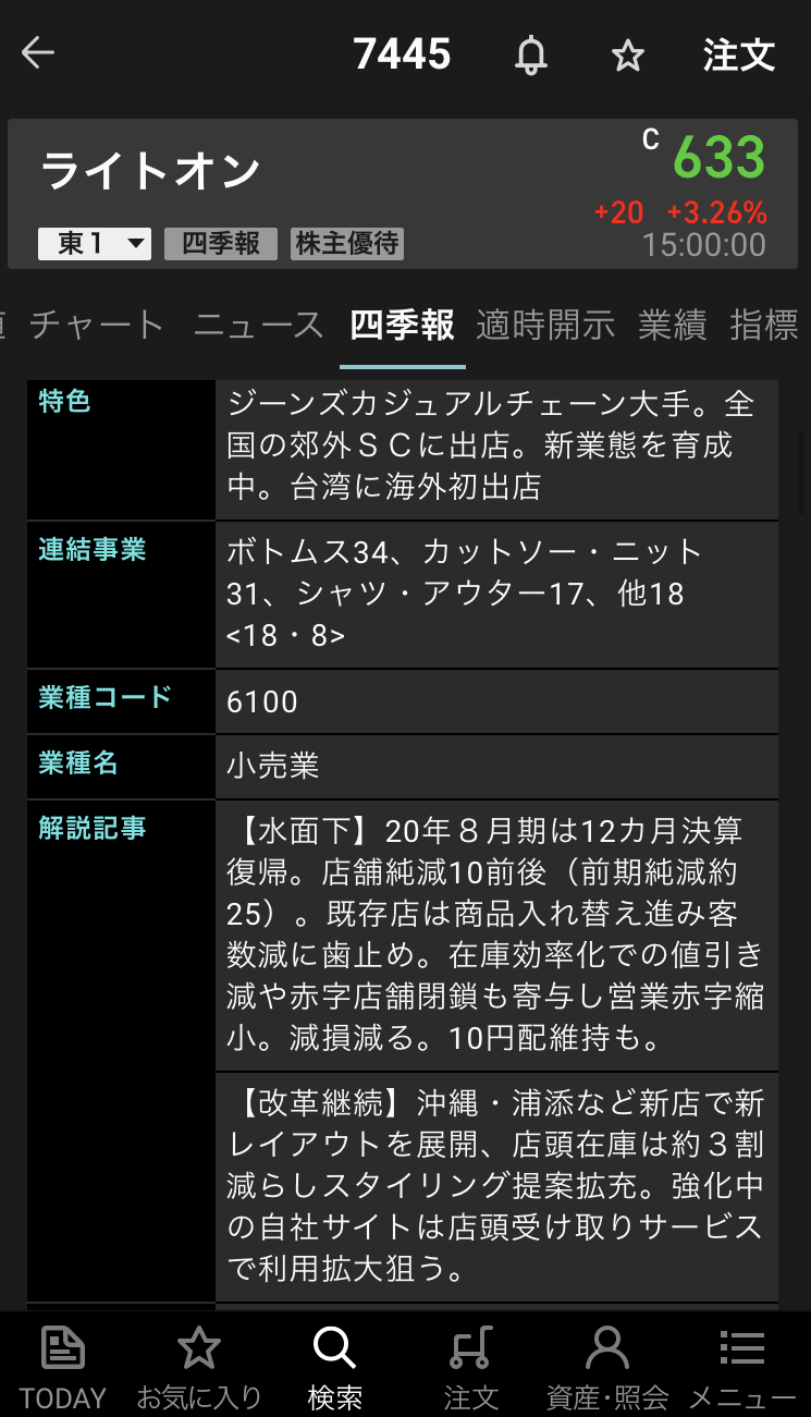 月次開示 材料 ライトオン|月次売上高前年比情報に関するお知らせ Facebook postはてブLINEPocketFeedly 概要 《概況》11月度 当月度は、スウェットやボアアウターなどブラックフライデーセールで打ち出した商品は堅調に推移しましたが、防寒アウターやニット、ウォーム素 材のボトムスの販売が鈍く、全社売上高前年同月比は 81.9%、既存店売上高前年同月比は 85.4%となりました。 その他商品動向としては、ウィメンズではシークレットライン(インナー付き機能性ボトムス)が堅調でした。 ライトオン【7445】の情報 IR情報 『ライトオン|月次売上高前年比情報に関するお知らせ』 スポンサーリンク Facebook postはてブLINEPocketFeedly