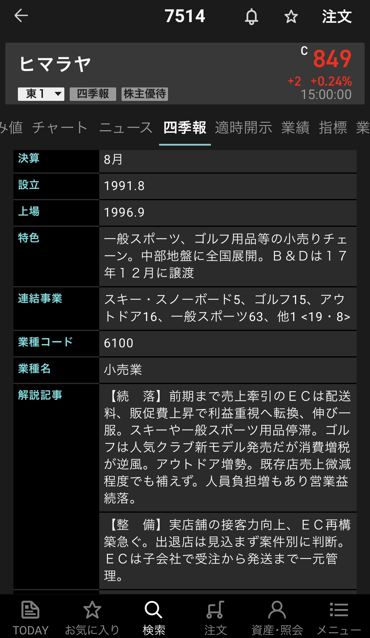 月次開示 材料 ヒマラヤ|2020年8月期12月度売上速報(前年比)についてのお知らせ Facebook postはてブLINEPocketFeedly 概要 (ご注意) ・本部売上・特設会場売上などは含まれておりません。 ・既存店とは、開店後13ヶ月を経過した店舗と定義しております。 ・今期、退店あるいは営業休止中の店舗については、前年全店売上高には当該売上高を含み、前年既存店売上高には含まれておりません。 ヒマラヤ【7514】の情報 IR情報 7514-20200106 スポンサーリンク Facebook postはてブLINEPocketFeedly