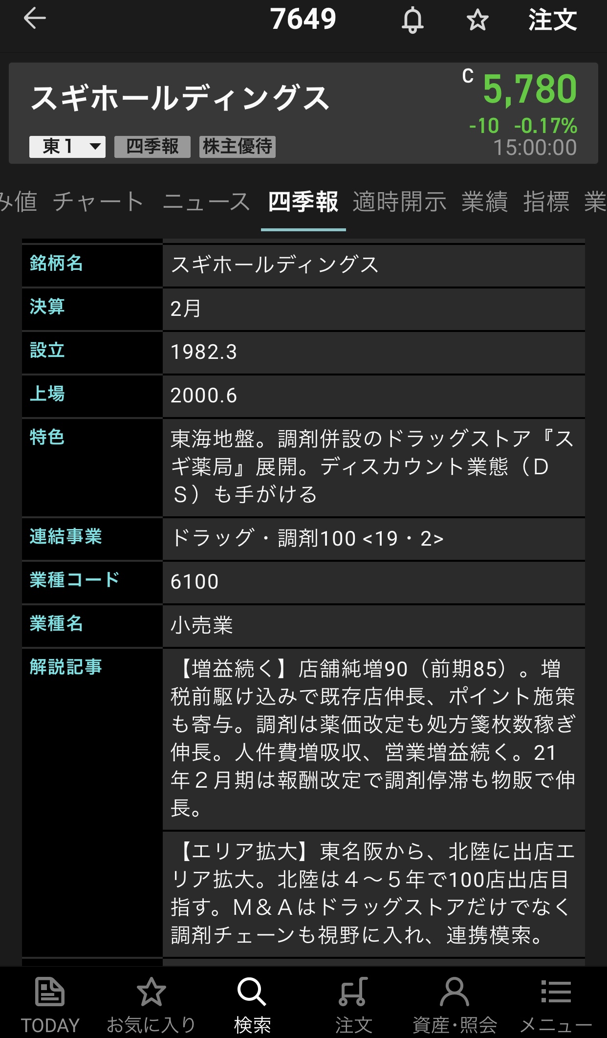 月次開示 材料 スギホールディングス|2019年12⽉度 ⽉次速報に関するお知らせ Facebook postはてブLINEPocketFeedly 概要 2.⽉次概況 当12⽉度の既存店ベースの売上伸率は、スギ薬局事業が+0.7%増、ジャパン事業が-4.5%減となり、スギ薬局全体の既存店売上は+0.1%増となりました。 3.新規出店・退店の状況 当12⽉度は、新規出店として19店舗を開設し、7店舗を閉店しました。結果、12⽉末のスギグループの総拠点数は 1,283拠点となりました。 スギホールディングス【7649】の情報 IR情報 7649-20200110 スポンサーリンク Facebook postはてブLINEPocketFeedly