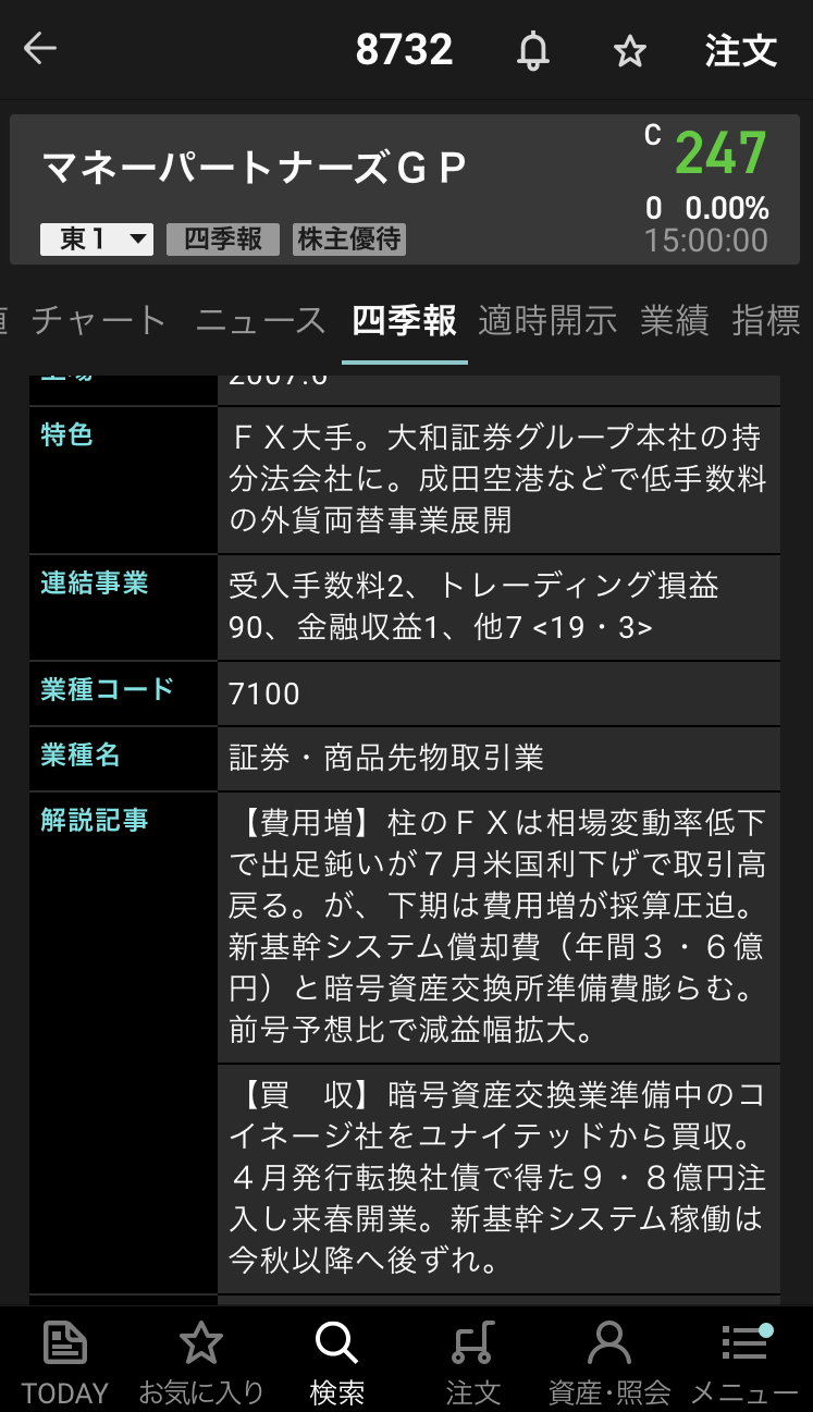 月次開示 材料 マネーパートナーズグループ|2019年11月次 月次概況(速報)のお知らせ Facebook postはてブLINEPocketFeedly 概要 2019年11月次の当社グループの月次概況(連結ベース)を下記のとおりお知らせいたします。なお、営業収益及び外国為替取引預り証拠金は速報値であるため、決算発表時の数値と異なる場合があります。 マネーパートナーズグループ【8732】の情報 IR情報 8732-20191206 スポンサーリンク Facebook postはてブLINEPocketFeedly