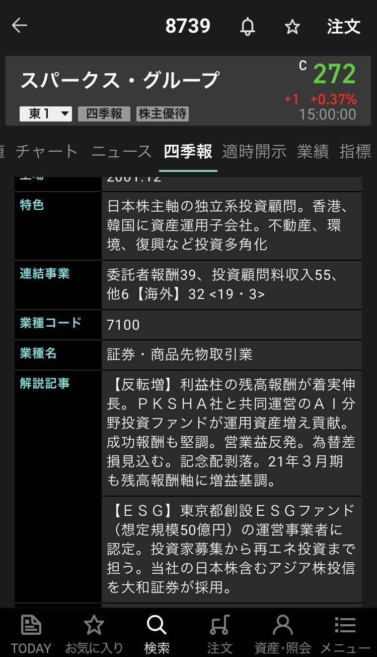 月次開示 材料 スパークス・グループ|2019 年 12 月度(速報値)月末運用資産残高のお知らせ Facebook postはてブLINEPocketFeedly 概要 当月の当社グループ全体の運用資産は前月末比で 301 億円増加(2.5%増加)し、1 兆 2,493 億円となりました。 スパークス・グループ【8739】の情報 IR情報 8739-20200110 スポンサーリンク Facebook postはてブLINEPocketFeedly