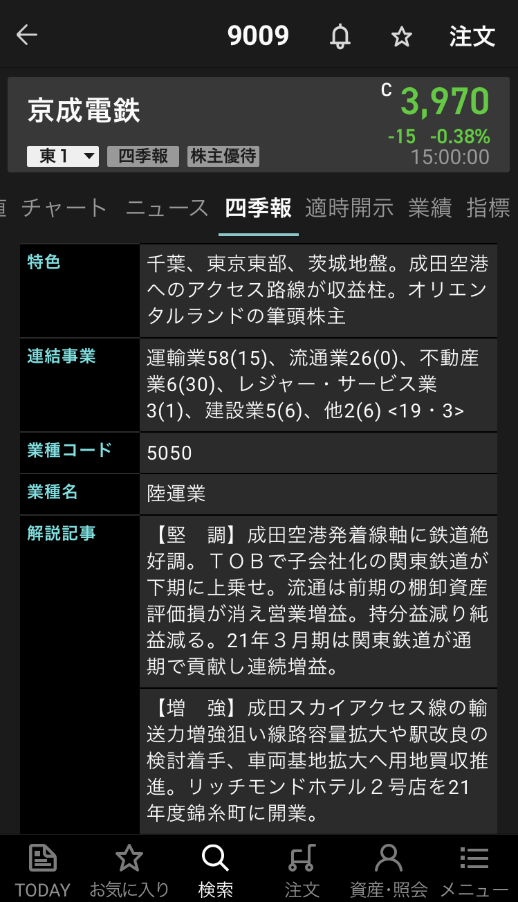 材料 自己株式の取得 京成電鉄|自己株式取得に係る事項の決定に関するお知らせ Facebook postはてブLINEPocketFeedly 概要 当社は、2020 年1月 31 日開催の取締役会において、以下のとおり、会社法第 163 条の規定により読み替えて適用される同法第 156 条の規定に基づき、子会社の保有する自己株式取得に係る事項を決議いたしましたので、お知らせいたします。 1.自己株式の取得を行う理由 会社法第135条第3項の規定により、当社子会社が保有する当社普通株式を取得するものです。 京成電鉄【9009】の情報 IR情報 9009-20200131 スポンサーリンク Facebook postはてブLINEPocketFeedly