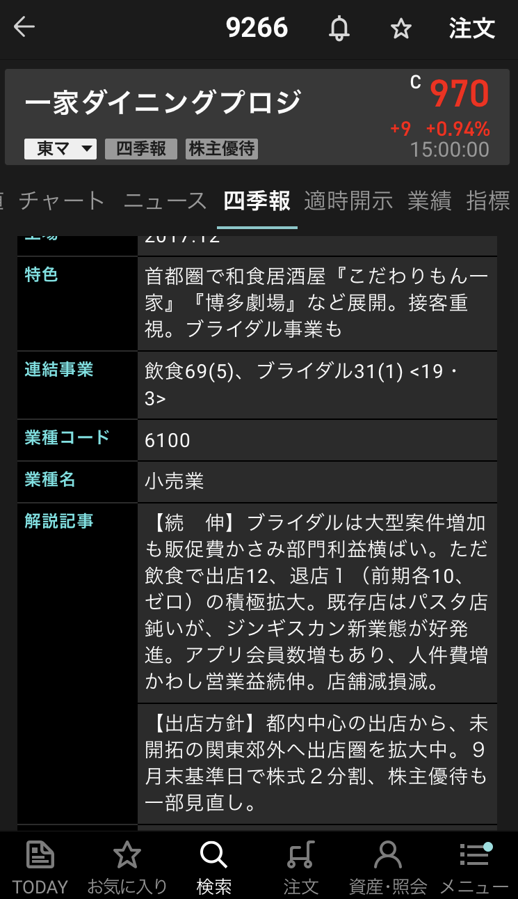 月次開示 材料 一家ダイニングプロジェクト|飲食事業部 月次報告(2019年11月度) Facebook postはてブLINEPocketFeedly 概要 2019年11月新規出店 屋台屋博多劇場御徒町店 大衆ジンギスカン酒場ラムちゃん御徒町店・大衆ジンギスカン酒場ラムちゃん千葉店 2019年11月改装 なし 2019年11月閉店 なし 一家ダイニングプロジェクト【9266】の情報 IR情報 9266-20191209 スポンサーリンク Facebook postはてブLINEPocketFeedly
