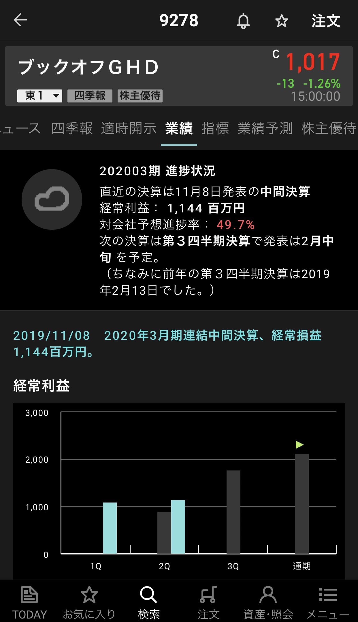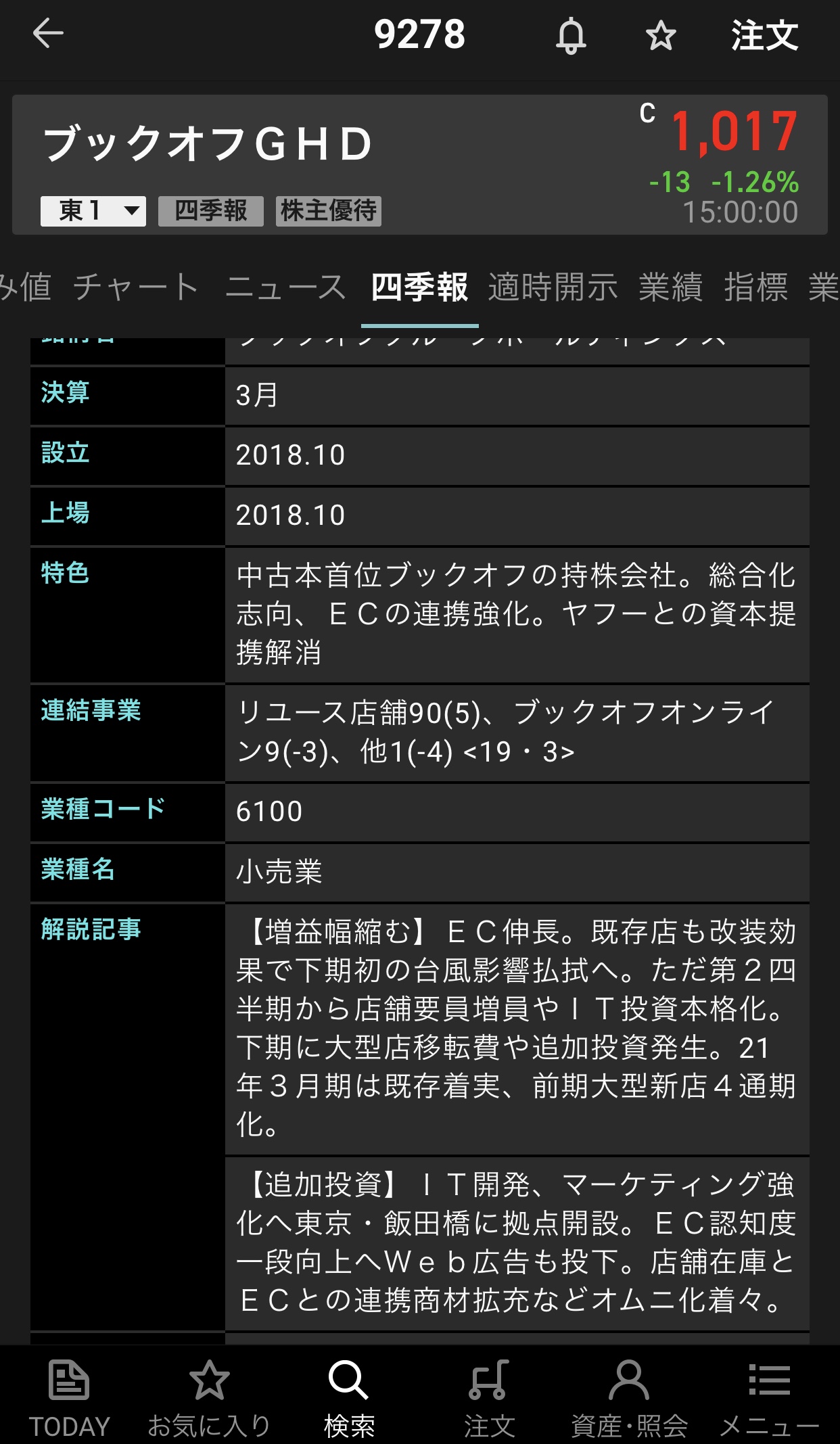 月次開示 材料 ブックオフグループホールディングス|2019 年 12 月 月次の売上状況について Facebook postはてブLINEPocketFeedly 概要 ■当月の売上状況について 既存店売上高前年比は 99.6%となりました(全店 100.5%)。 ソフトメディア、貴金属・時計・ブランドバッグ等の売上高が前年を上回った一方で、書籍、アパレル、スポーツ用品の売上高が前年を下回ったことで、既存店売上高は前年を下回りました。 ブックオフグループホールディングス【9278】の情報 IR情報 9278-20200106 スポンサーリンク Facebook postはてブLINEPocketFeedly