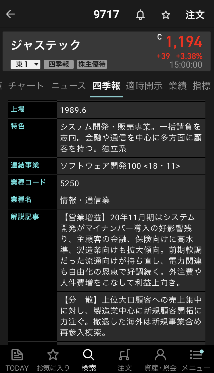 材料 自己株式の取得 ジャステック|自己株式の取得および自己株式立会外買付取引(ToSTNeT-3)による 自己株式の買付けに関するお知らせ Facebook postはてブLINEPocketFeedly 概要 当社は、本日開催した取締役会において、会社法第 165 条第3項の規定により読み替えて適用される同法第156 条の規定に基づき、自己株式を取得することおよびその具体的な取得方法について決議いたしましたので下記のとおり、お知らせいたします。 1. 自己株式の取得を行う理由 機動的な資本政策の遂行および資本効率の向上と株主還元の充実を図るため ジャステック【9717】の情報 IR情報 9717-20200110 スポンサーリンク Facebook postはてブLINEPocketFeedly