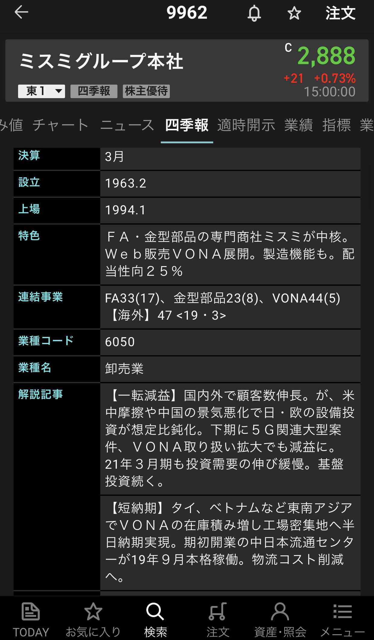 月次開示 材料 ミスミグループ本社|月別売上高実績【2019年12月】 - 株式会社ミスミグループ本社連結 - Facebook postはてブLINEPocketFeedly 概要 ※ 上記売上高には、株式会社ミスミ、駿河精機株式会社等の連結対象子会社すべての売上高が含まれております。 ミスミグループ本社【9962】の情報 IR情報 9962-20200129 スポンサーリンク Facebook postはてブLINEPocketFeedly