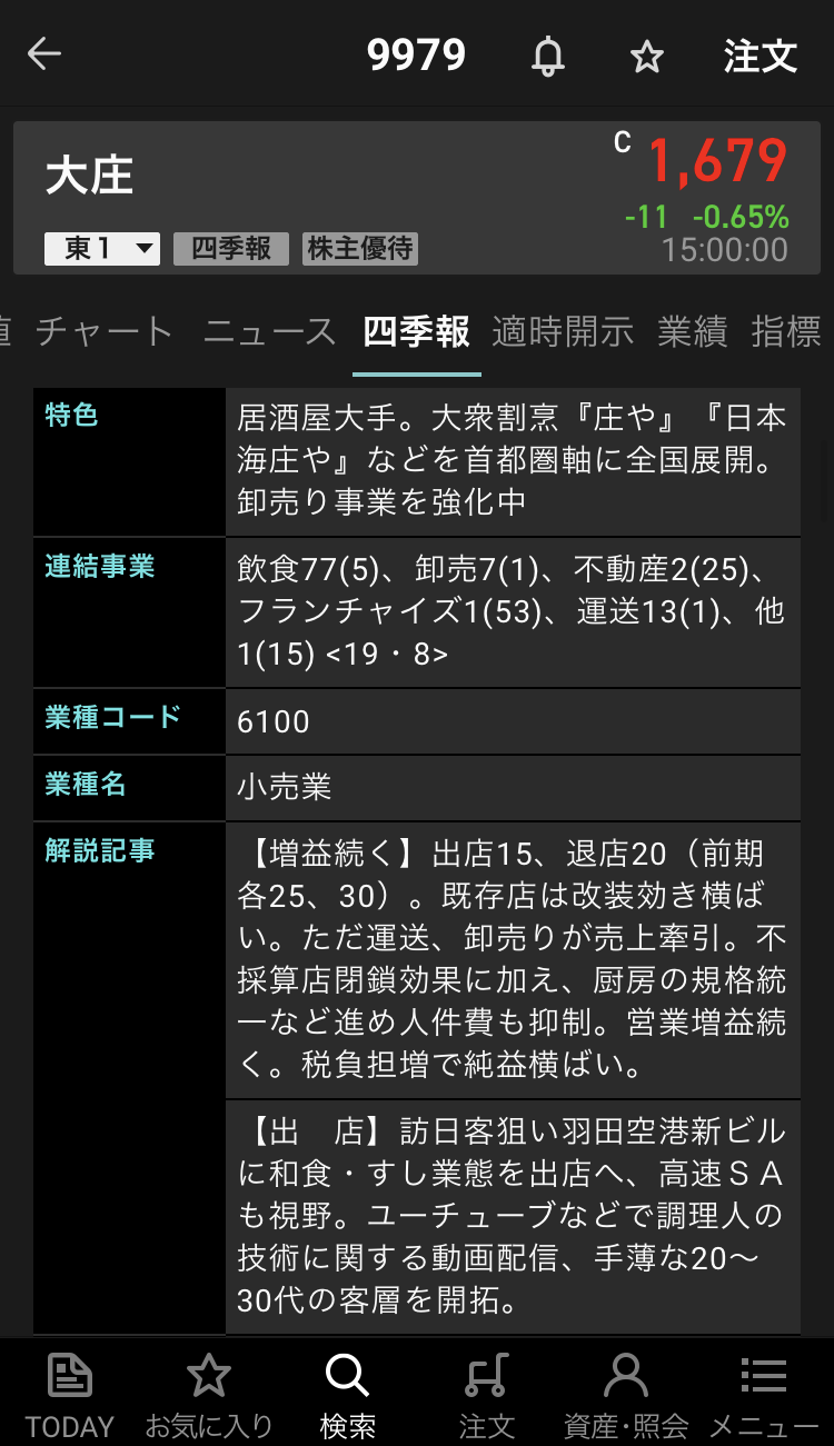 月次開示 柿安本店|2020年2月期11月度の売上高および第3四半期(自2019年9月1日 至2019年11月30日)の売上高についてのお知らせ 概要 2020年2月期11月度および第3四半期の売上高速報値の集計ができましたのでお知らせいたします。 柿安本店【2294】の情報 IR情報...
