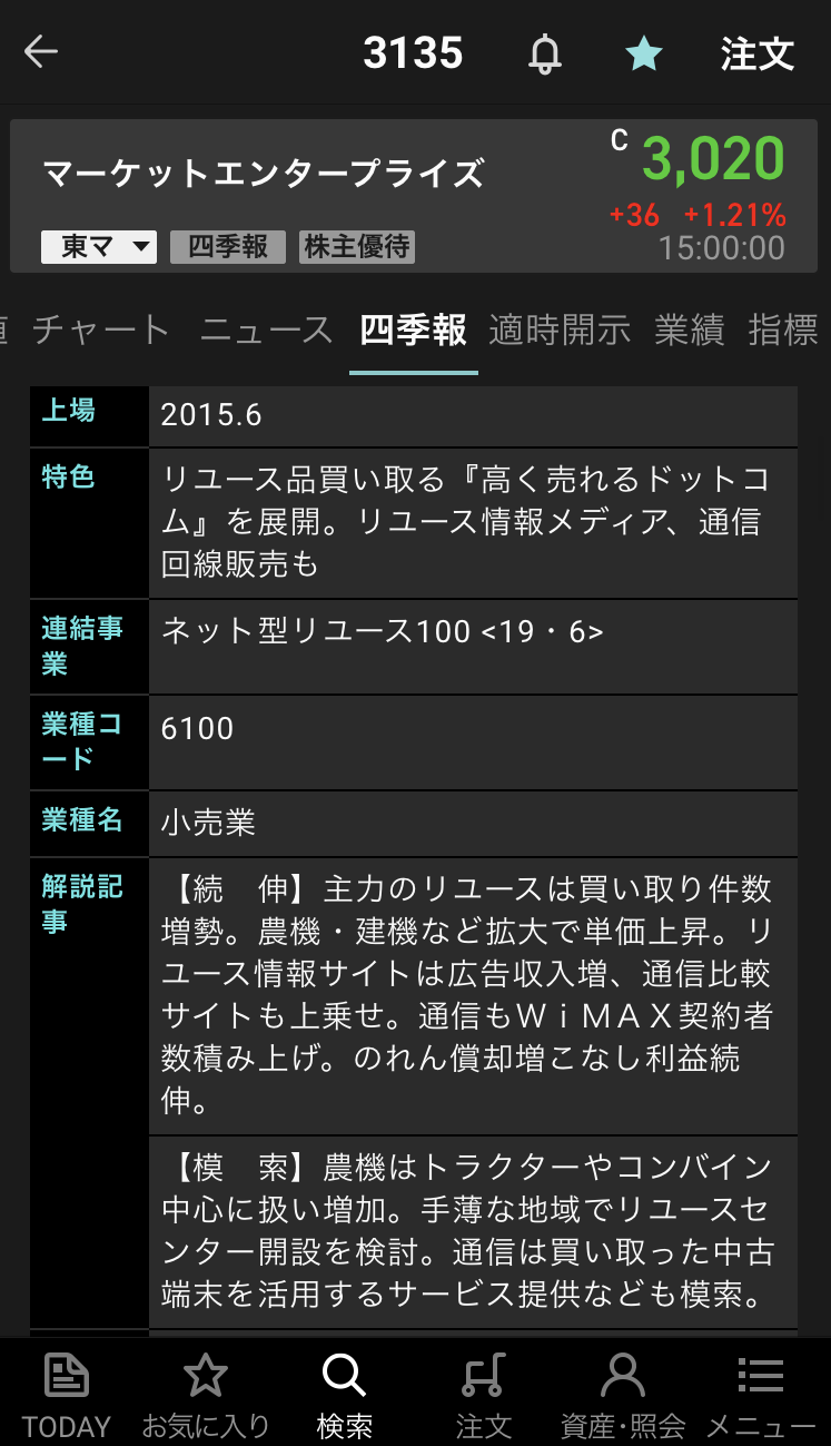 マーケットエンタープライズ【3135】の情報