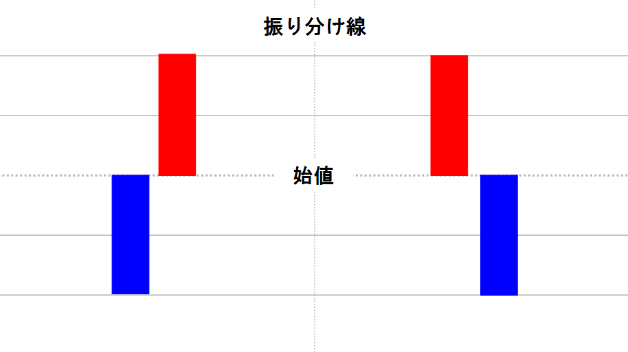 反対に陽線から陰線の振り分け線は、一時的に買いが優勢になったものの、売りの勢力は衰えていないという見方ができます。