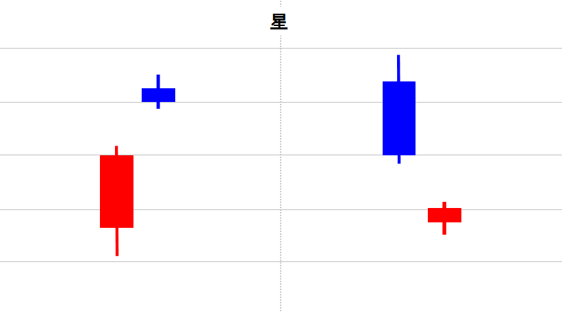 星とは、前回のローソク足から窓を開けて出現する小さなローソク足のことです。