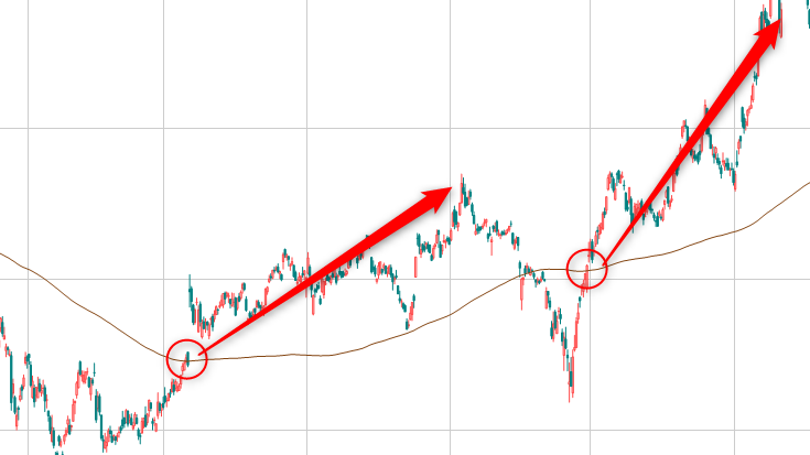 ただし、売りパターンの「戻り売りを狙うポイント」と似たところもありますので、株価が移動平均線を上抜いたからといってすぐに判断するのではなく、移動平均線の向きもしっかりと確認するようにしましょう。