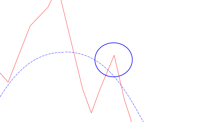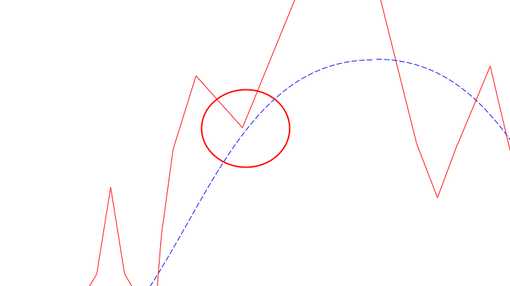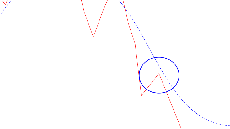 移動平均線は期間を長期にするほど穏やかに推移するため、大きなトレンドの流れは掴めても、細かい値動きの流れを掴むのは難しいです。