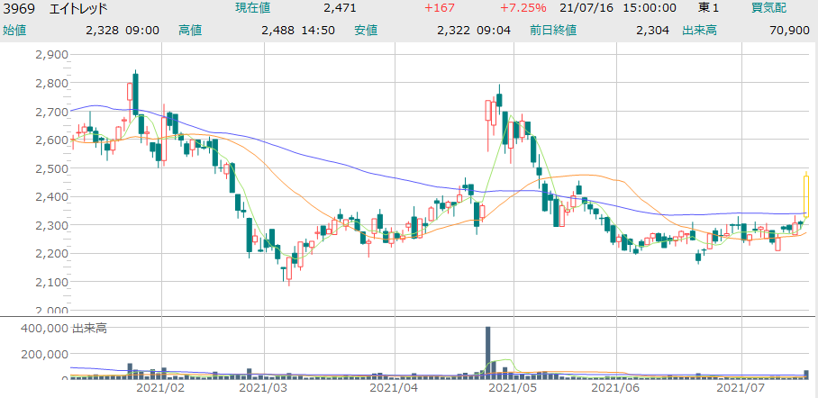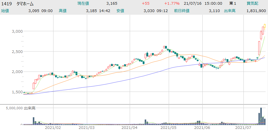 株価も大幅に伸ばしており、上場来高値を更新する絶賛青天井相場中です。