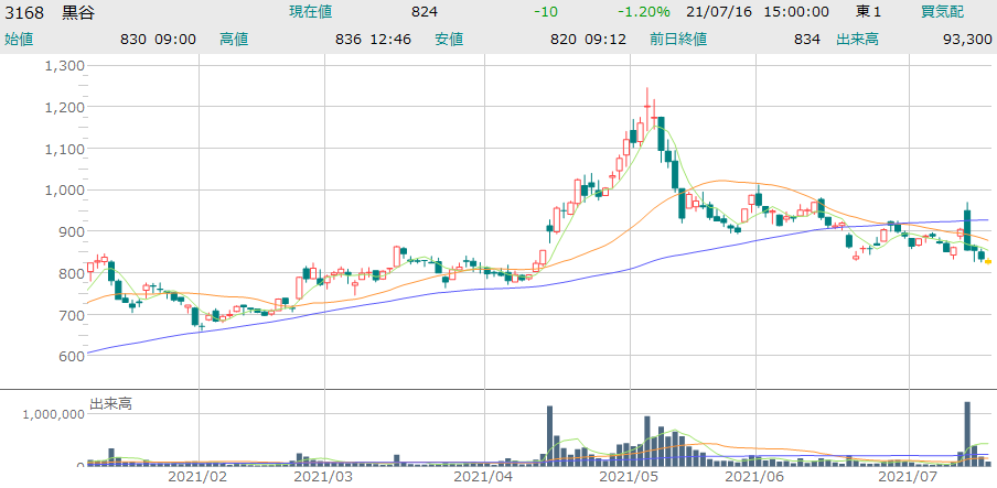 2021年7月16日時点で株価は824円ですので、100株取得の最低投資金額は82,400円となります。