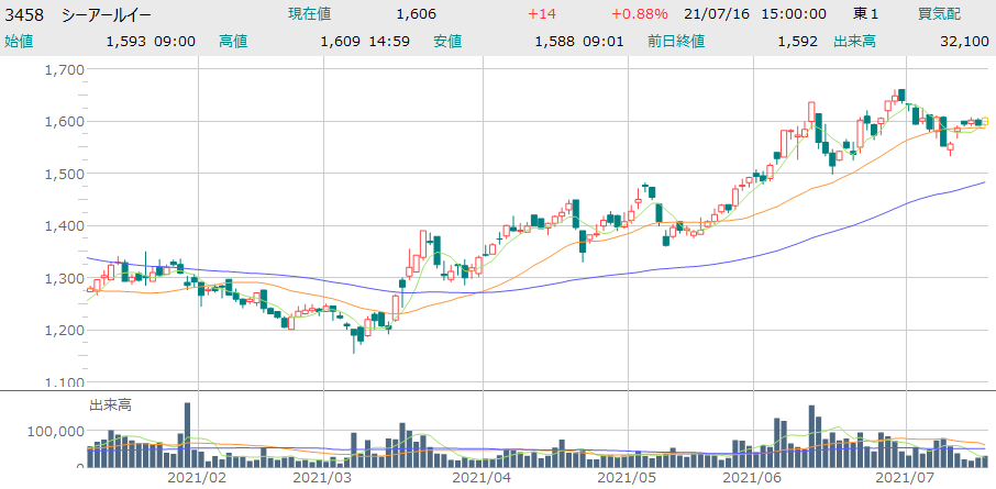 またシーアールイーは業績も絶好調となっており、今期は前期比で11%増益の予想となっていますが、期初から絶好調で第2四半期終了時点で通期計画を超過と飛ばしています。