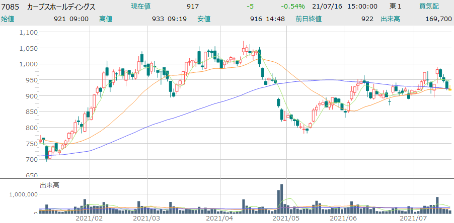 2021年7月16日時点で株価は917円ですので、100株取得の最低投資金額は91,700円となります。