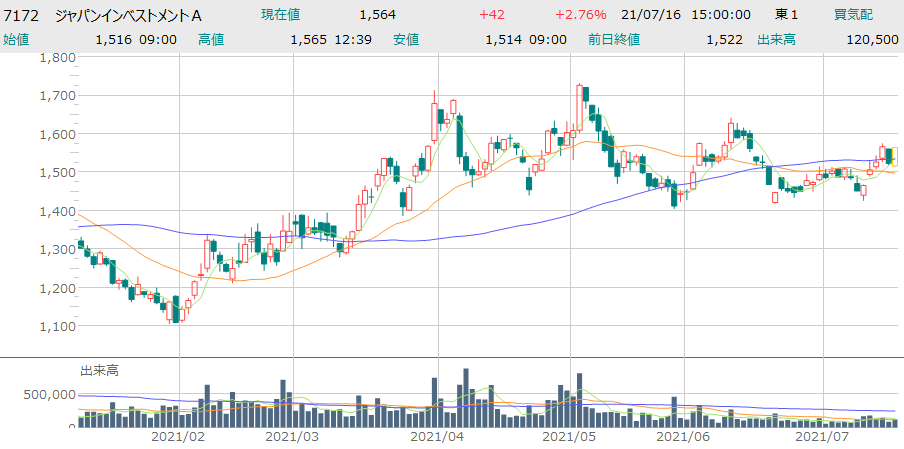 2021年7月16日時点で株価は1564円ですので、100株取得の最低投資金額は156,400円となります。