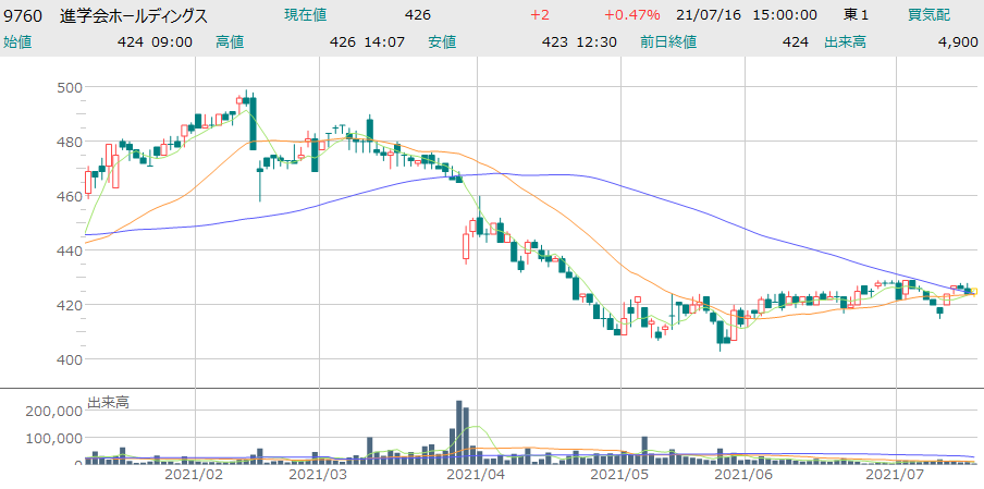 集団塾のかき入れ時である夏に向けて生徒数がコロナ前に戻ってきているとのことで、徐々に状況は改善されていると言って良さそうでしょう。
