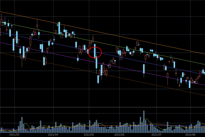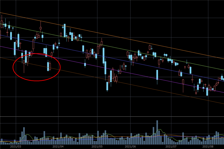 下値支持線とは、簡単に言うと買いが出やすく株価が下げ渋る傾向にあるラインのことです。
