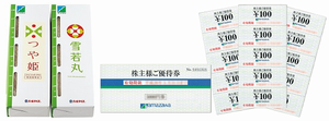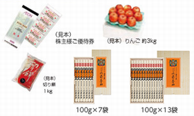 ▼保有期間3年未満 ・株主ご優待券10,000円(500円券×20枚)または米券5kg ▼保有期間3年以上 ・株主ご優待券12,000円(500円券×24枚)またはお米券7kg |