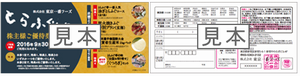 | 600株以上 | ・10,000円相当の「株主様ご優待お食事券」またはお米10kg |
