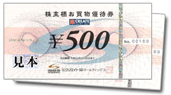 | 500株以上1,000株未満 | ・株主優待お食事券 6千円(1,000円券 6枚) |