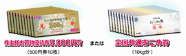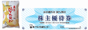 | 100株以上 | ▼株保有期間1年未満 株主様お買い物優待券5,000円分(年間10,000円)または全国共通おこめ券10kg分(年間20kg) ▼株保有期間1年以上 株主様お買い物優待券7,500円分(年間15,000円)または全国共通おこめ券15kg分(年間30kg) |
