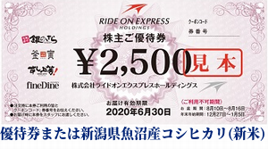 ・株主優待券2,000円分+魚沼産こしひかり3kg(基準日8月末は更に優待券2,000円分) |