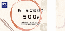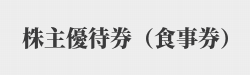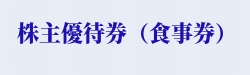 お食事優待券2,000円分(1,000円券×2枚)を年2回 ▼200株以上600株未満 お食事優待券4,000円分(1,000円券×4枚)を年2回 ▼600株以上1,000株未満 お食事優待券8,000円分(1,000円券×8枚)を年2回 ▼1,000株以上 お食事優待券12,000円分(1,000円券×12枚)を年2回 ▼権利確定月 |
