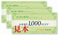 株主優待ご飲食券3枚(3,000円分) ▼500株~999株 株主優待ご飲食券15枚(15,000円分) ▼1,000株以上 株主優待ご飲食券25枚(25,000円分) ▼権利確定月 |