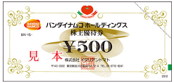 500円(500円券×1枚) ▼300株~499株 1,500円(500円券×3枚) ▼500株~999株 2,500円(500円券×5枚) ▼1,000株以上 5,000円(500円券×10枚) ※上記それぞれ年2回 ▼権利確定月 |