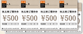 株主優待券1,000円(1,000円券1枚)を年2回 ▼1,000株以上2,000株未満 株主優待券5,000円(1,000円券5枚)を年2回 ▼2,000株以上 株主優待券10,000円分(1,000円券10枚)を年2回を年2回 ▼権利確定月 |